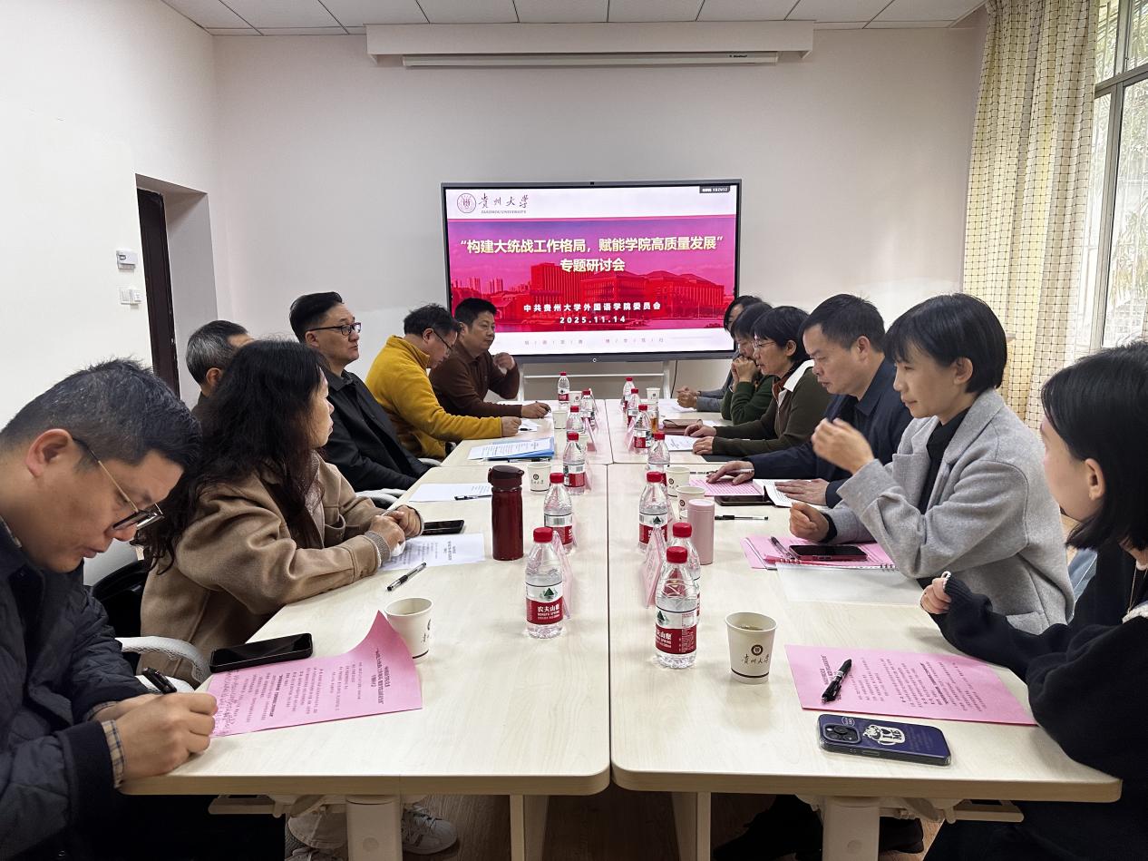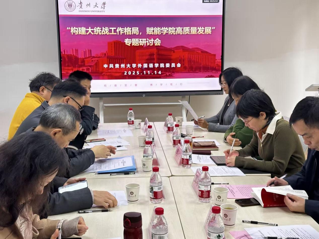 2025年11月14日中午,我院在外语楼104会议室召开了2025年统战工作会议,学院党政领导、教工党支部书记、民主党派代表、无党派人士代表、归国留学教师代表参加会议。会议由周杰主持。