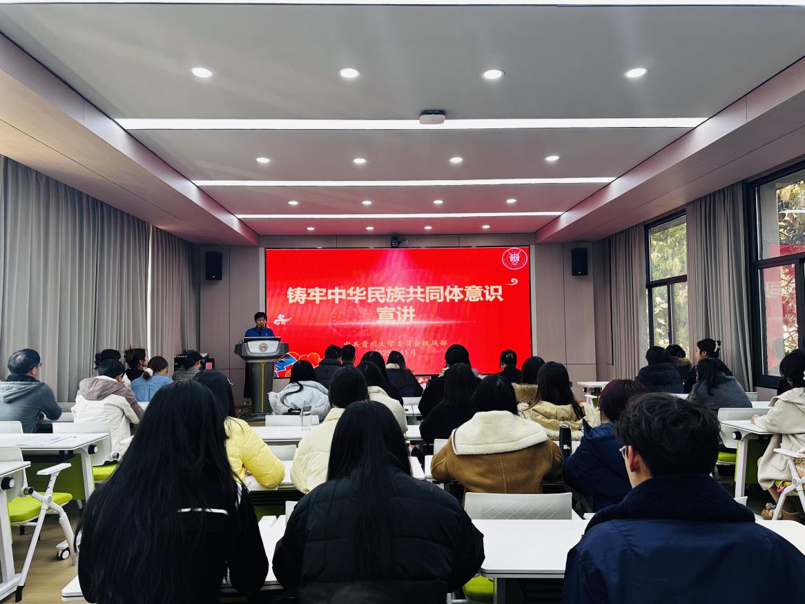 (外国语学院讯)为深入学习贯彻习近平总书记关于加强和改进民族工作的重要思想,加强民族团结教育,引导师生党员深刻领会新时代民族工作的核心要义,11月25日,外国语学院党委精心组织、成功举办了一场主题为“铸牢中华民族共同体意识”的专题讲座,为全院党员师生带来了一场内容丰富、思想深刻的理论辅导。