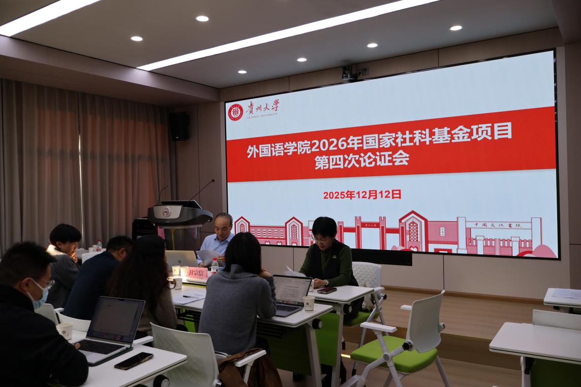 12月12日,我院2026年度国家社科基金项目第四次论证会在201报告厅顺利召开。论证会由我院党委书记周杰主持,清华大学封宗信教授应邀作为指导专家,我院十余位申报教师积极参与。会议通过“课题汇报+专家点评+互动答疑”的形式,为项目申报质量提升精准把脉。